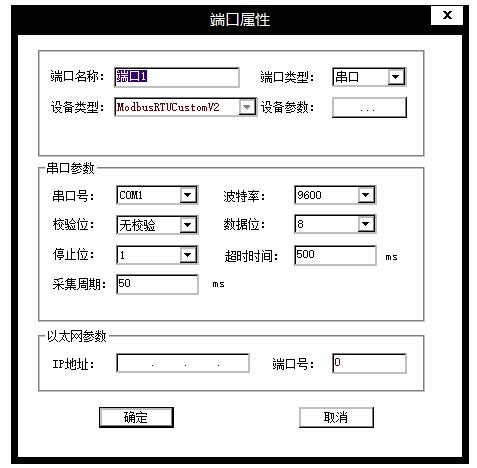 “ModbusRTUCustomV2”端口参数设置如下: